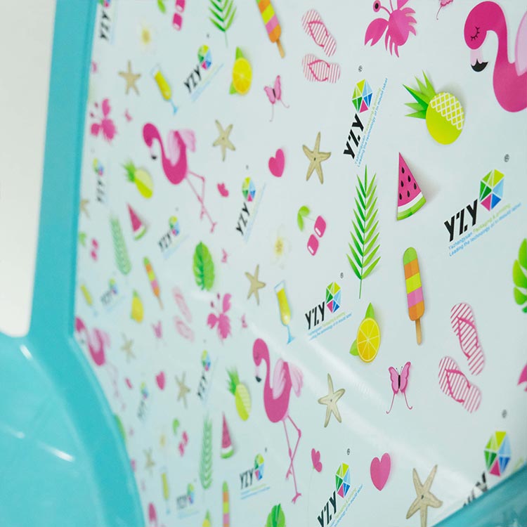 Selepas beberapa perbincangan dan ujian, skema hiasan bahagian akhirnya diterima pakai. YZY hanya menggunakan Label Suntikan Kerusi Boleh Tindan Plastik Dalam Acuan di kawasan teras belakang kerusi, yang bukan sahaja mengelakkan keletihan visual yang disebabkan oleh percetakan berskala besar tetapi juga meningkatkan daya saing yang berbeza bagi produk pelanggan melalui sorotan hiasan. Susun atur corak reka bentuk adalah padat dan jarang dengan sewajarnya, dan pada masa yang sama, logo jenama pelanggan dan corak reka bentuk disepadukan, mencapai dwi fungsi hiasan dan penyebaran jenama. Berbanding dengan pinggan mangkuk kecil, label IML kerusi YZY menggunakan filem komposit PET/PP yang menebal, yang menggabungkan keliatan dan rintangan suhu tinggi, dan sesuai untuk pengacuan tekanan tinggi dalam acuan besar. Bahagian belakang kerusi mempunyai struktur melengkung, dan label perlu dibentuk terlebih dahulu dalam 3D untuk dipadankan dengan kelengkungan acuan. Proses IML boleh mencapai tahap keseragaman corak yang tinggi untuk produk global, digabungkan dengan reka bentuk tahan cuaca, ia boleh memenuhi keperluan pasaran luar negara.